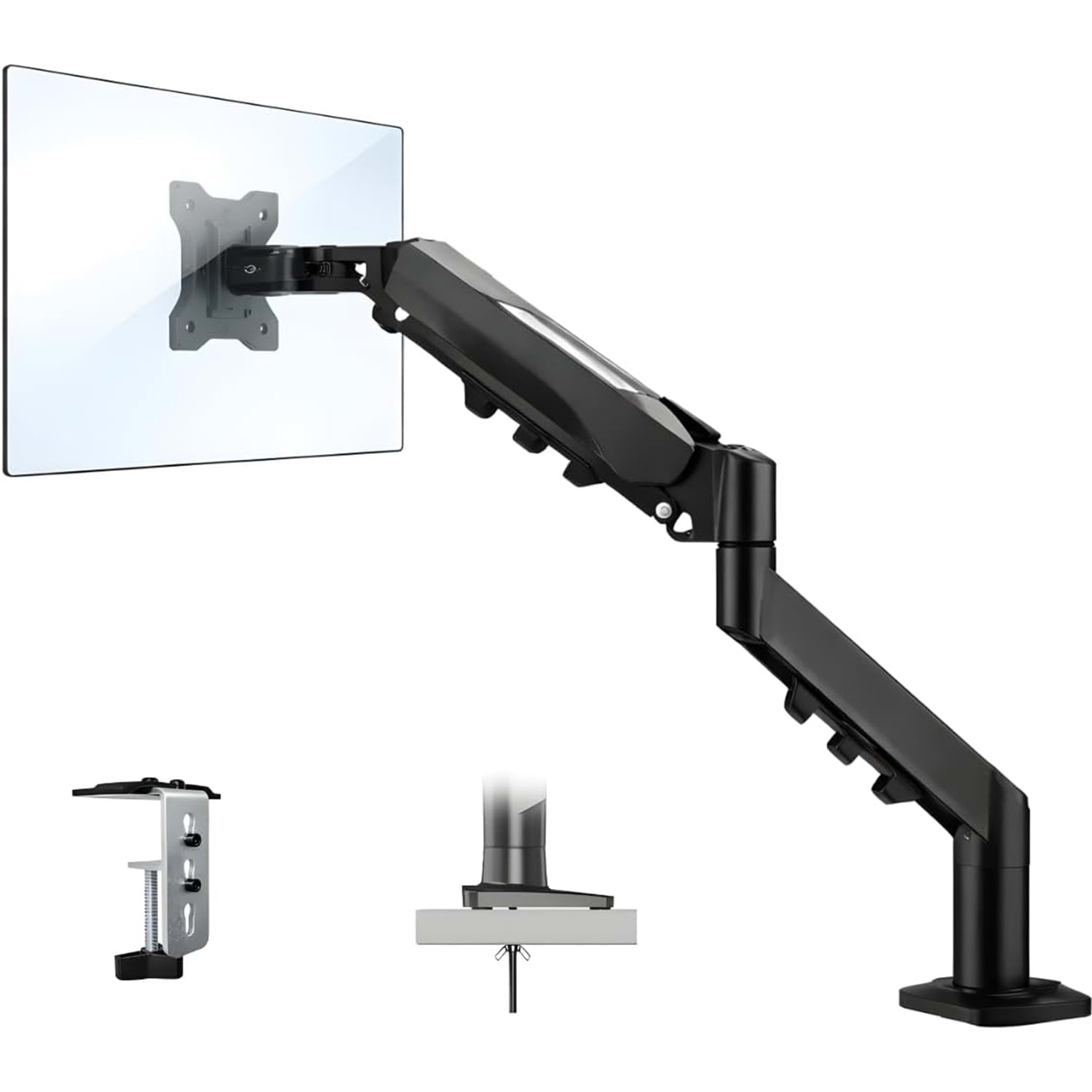 Sıkıştırma (C-Clamp) Yöntemi: Masanızın kenarına mandal gibi sıkıştırılarak monte edilir. Herhangi bir delme işlemi gerektirmez ve masaya zarar vermez. Kalınlığı 10 mm ile 90 mm arasında olan masalar için idealdir.