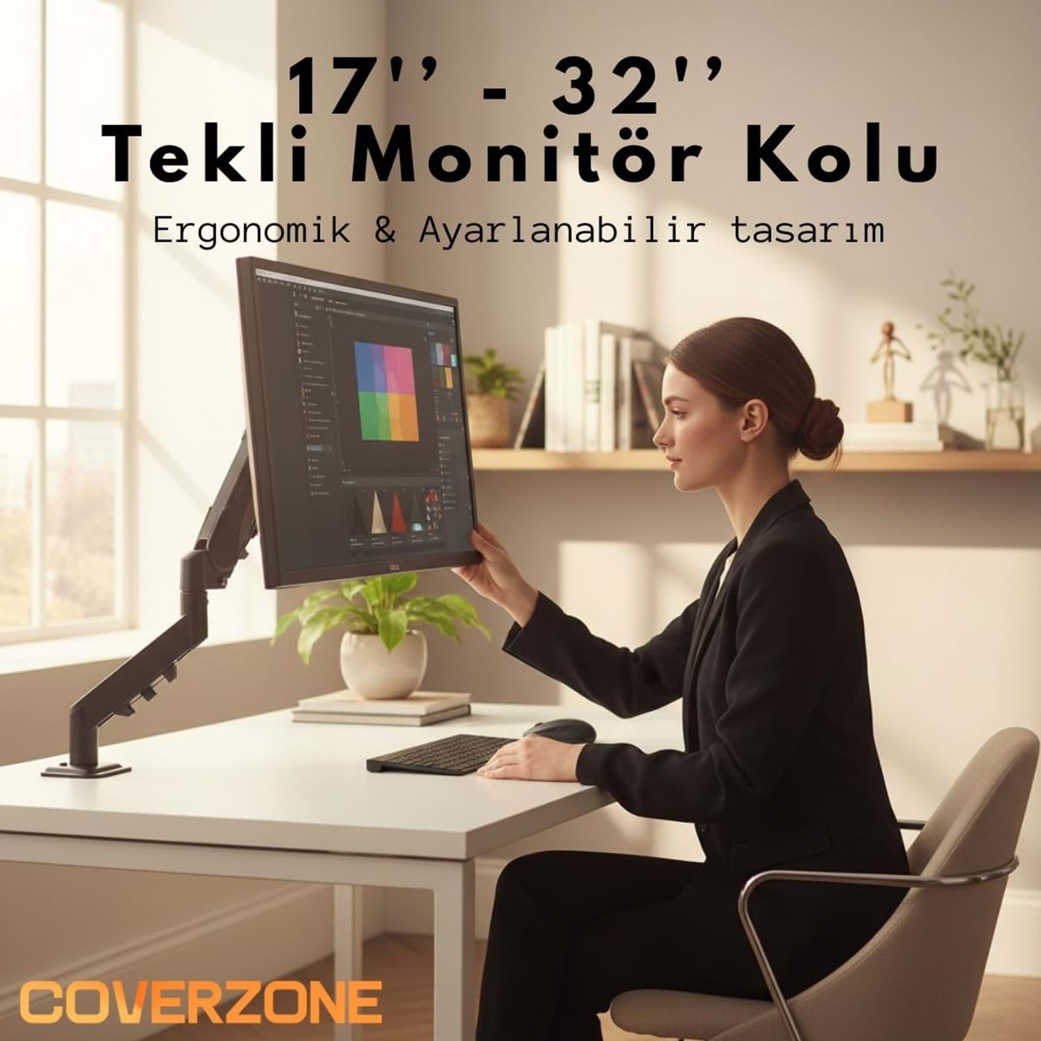 Coverzone 17-32 İnç Amortisörlü Tekli Pivot Monitör Kolu (F80) ile Kusursuz Ergonomi